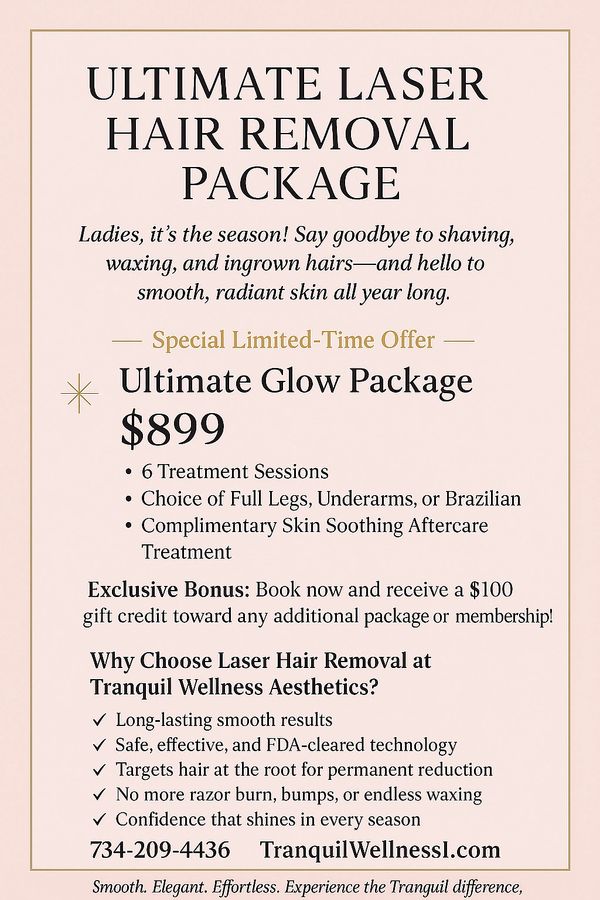 Tranquil Wellness laser & Aesthetics Is here for all your cosmetic laser and all skincare needs. Our professionally trained staff will provide a free consultation to make the best decision to achieve your skincare expectorations.